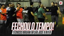Inter: Técnico do São José vai pra cima de Coudet e só sai contido; veja - UOL Veja imagens da confusão entre Eduardo Coudet, do Inter, e China Balbino, do São José.
